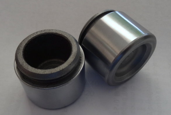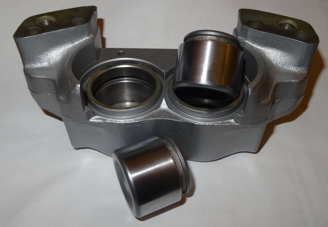 The eight pistons were dirty and had hard deposits stuck to them. So did the bores. This certainly hindered movement. The sides were taped up, they were bead-blasted, and then the sides were polished. Fortunately all surfaces are perfect with no pitting.