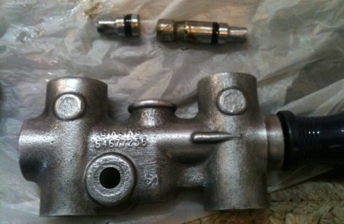 While I was searching and waiting for seals I dismantled and cleaned the brake safety switch (below) and the front/rear proportioning valve, and replaced all four brake hoses.