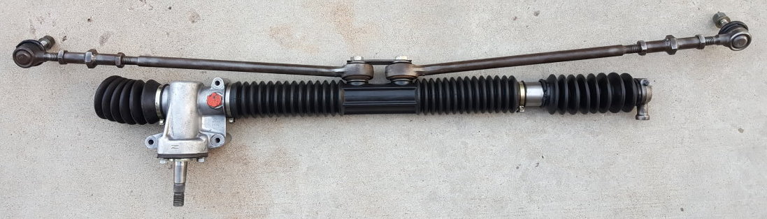 And here is the restored steering rack. Fortunately the rubber was in excellent condition - not dry or cracking. I filled it with about a half quart of 40 weight oil. I haven't found a new steering dampener yet. The old one was leaking badly.