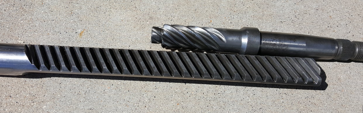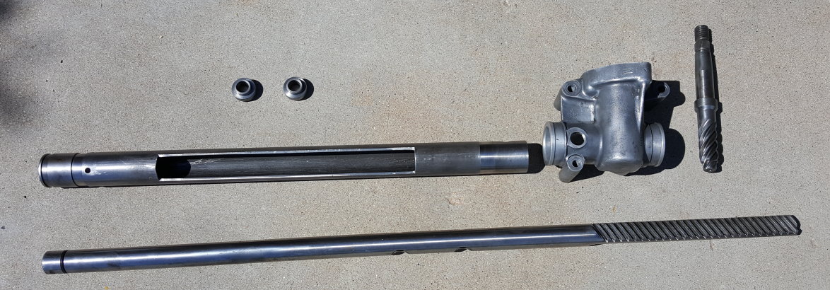 Fortunately everything else is in excellent condition. Here is the rack and worm gear with no real wear at all. Now I just need to find a new bushing.