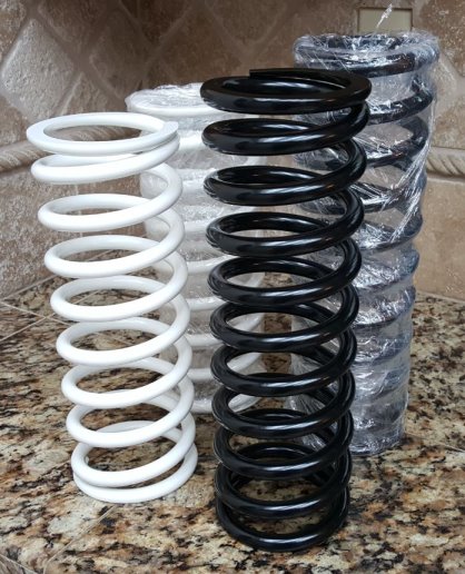 I had the springs powder coated. The rears were black, and surprisingly the fronts were white. The original colors were on the tops and bottoms of the springs where they had been pressed against the rubber padding.