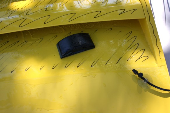 Then I sanded it off with 1000 grain sandpaper and lots of water. This makes the surface perfectly flat. The first time I color-sanded a car was pretty traumatic. The beautiful gloss of new paint is quickly replaced with the dull, sanded surface. I thought, "I've ruined it!" but the shine does come back. Eventually.