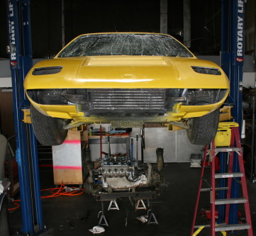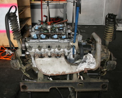 In preparation for getting it back on the road again, I wanted to check the engine, flush out all the fluids, change all rubber seals, change the belts, and clean it up. The engine hasn't run in about 20 years so it needs to be resuscitated carefully. I was very anxious as the car was raised up over the engine and Erik Rathmann of Rathmann Autoworks opened it up.