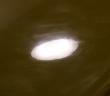 A closer look (here on the right front fender) shows the surface is still a bit wavy. This is the reflection of a ceiling lamp. I want it to be clear and sharp, like you were looking in a mirror.