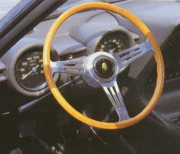 Very early Miuras had elongated side lights on the nose, wooden steering wheels, and a straight shift lever.