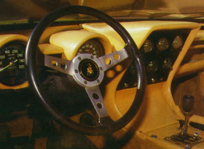 Later P400s had leather covered steering wheels and the shift lever was bent slightly towards the driver.