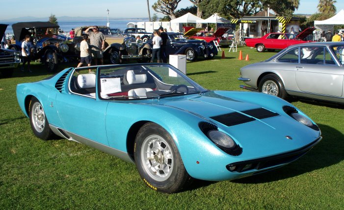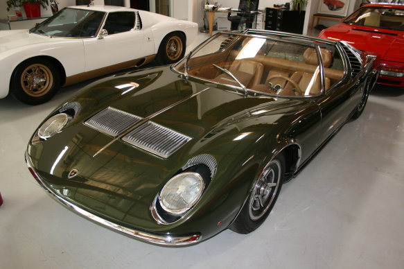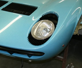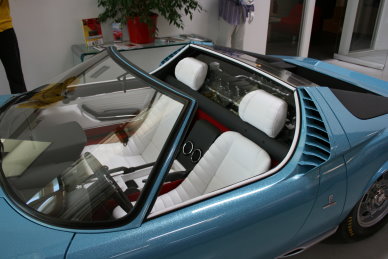 I could dedicate several web pages to this car. The are many differences from a stock Miura that don't show up in the photos. It is probably the most beautiful Miura of all. And yes, the metallic blue is correct!